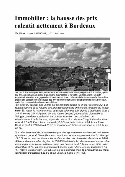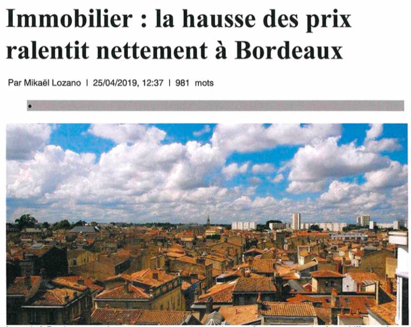Découvrez en image cet article sur l'immobilier à Bordeaux parlant du ralentissement des hausses des prix sur Bordeaux et la région.